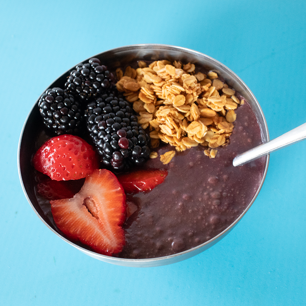 Creamy Homemade Vanilla Ice Cream & Chocolatey Fudgy Brownies topped with Hot Fudge, Salted Caramel, Berry Syrup, Whipped Cream, & Fresh Fruit. Mmmmm!